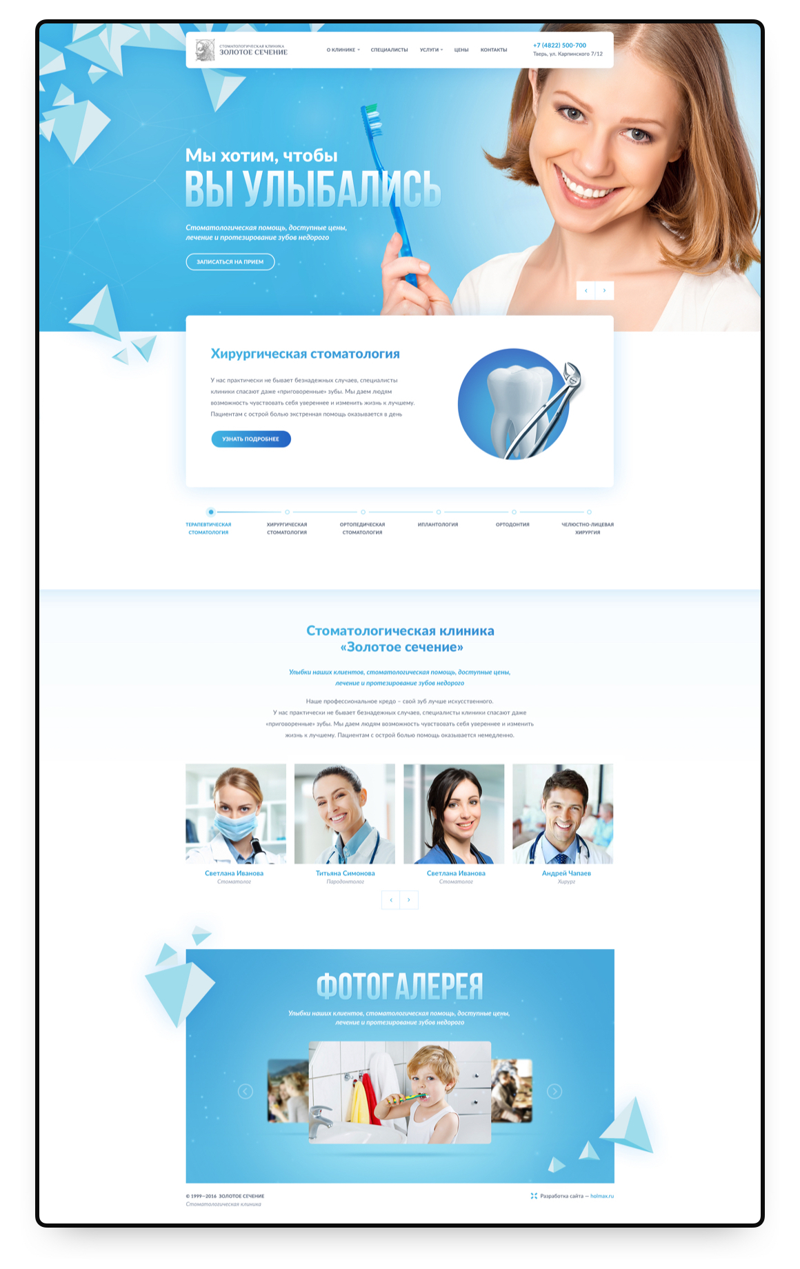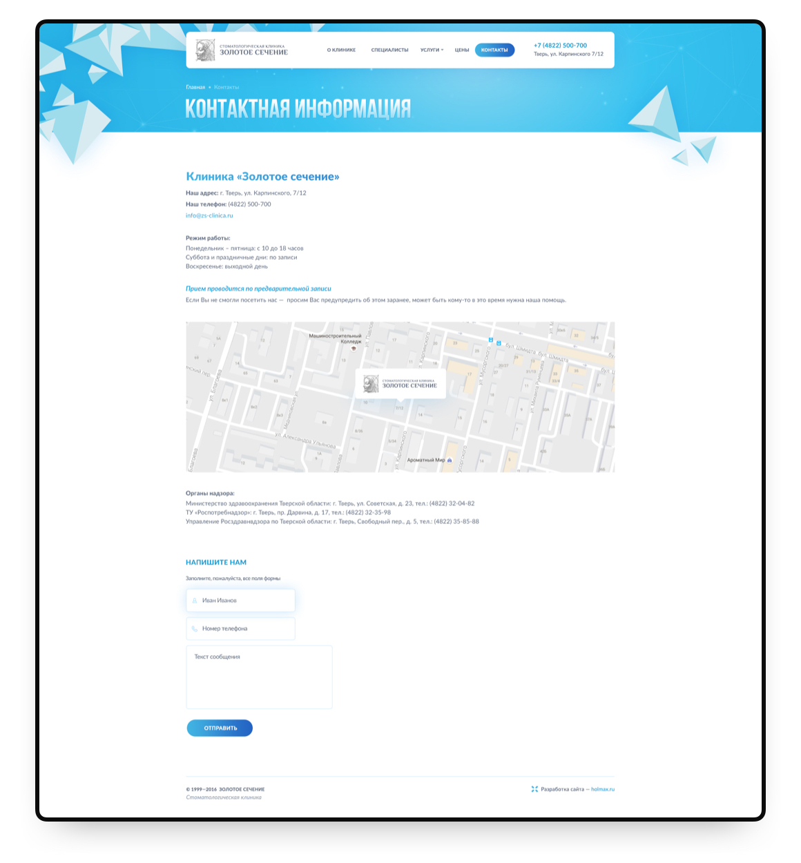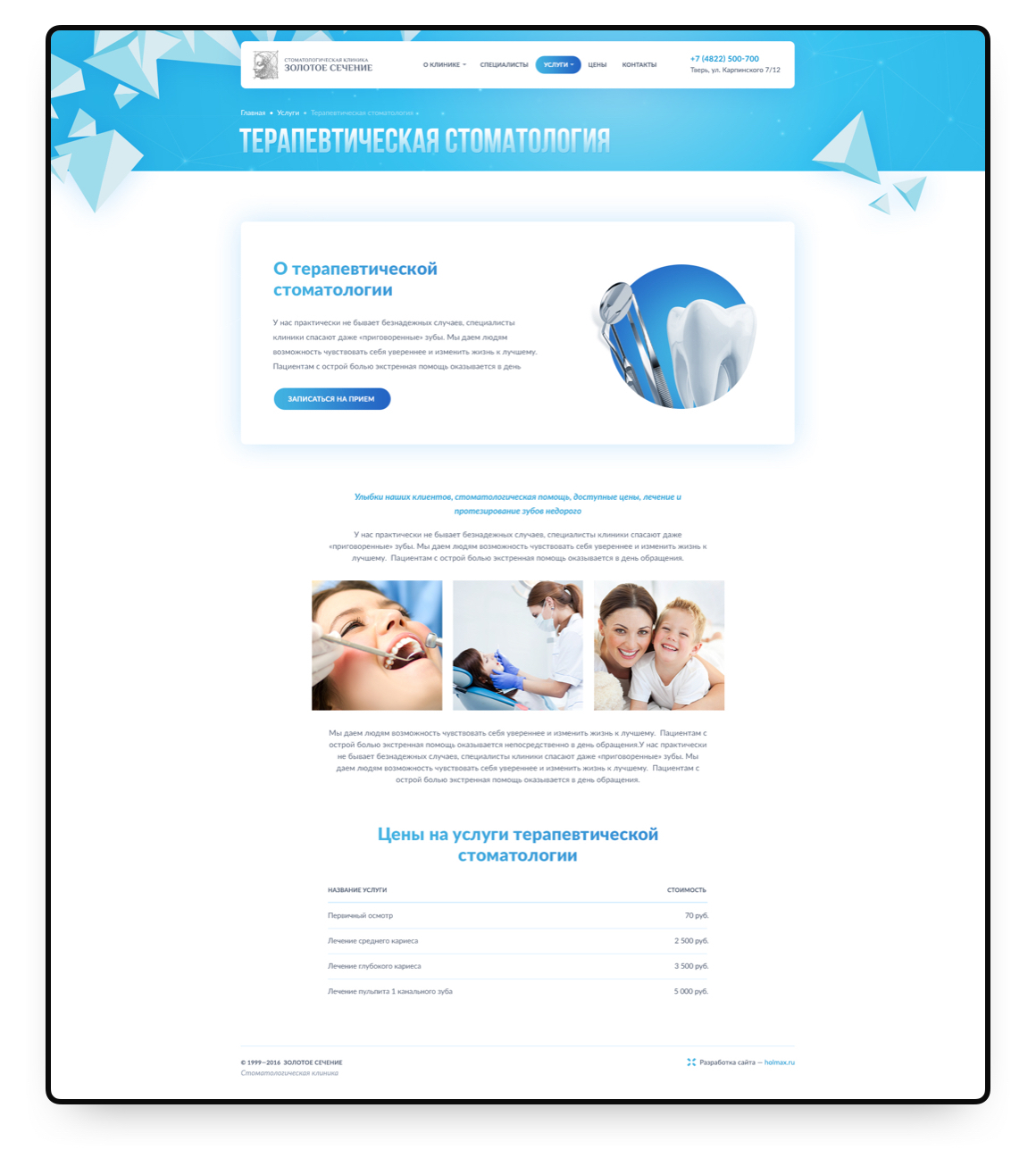 Задача проекта: создать сайт, который расскажет о клинике, поможет пациентам выбрать необходимую услугу и записаться на прием.