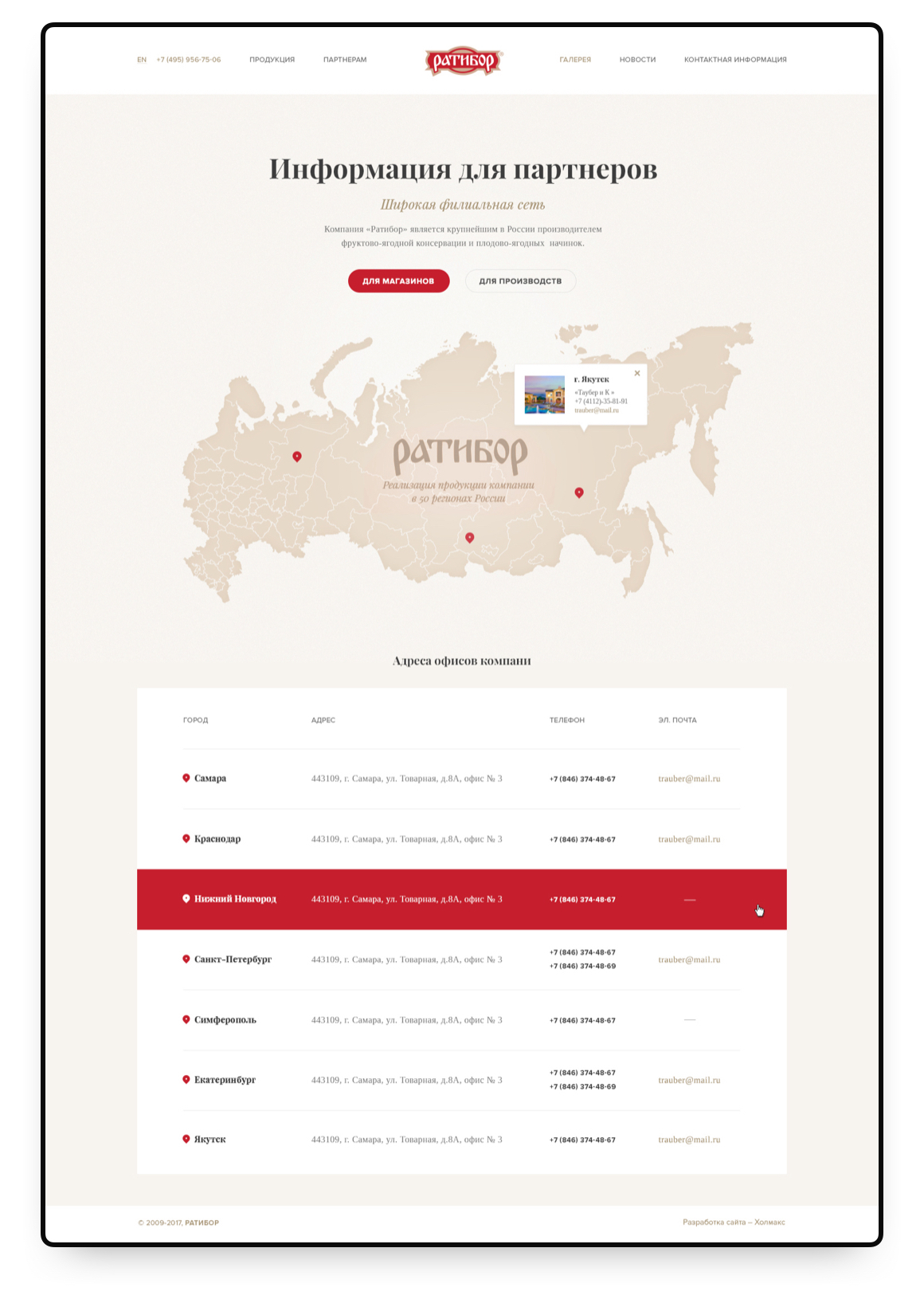 «Ратибор» — один из крупнейших в России производителей овощной и фруктово-ягодной консервации, начинок для пищевой промышленности. Слоган компании, «Традиции хорошего вкуса», отражает ее философию.