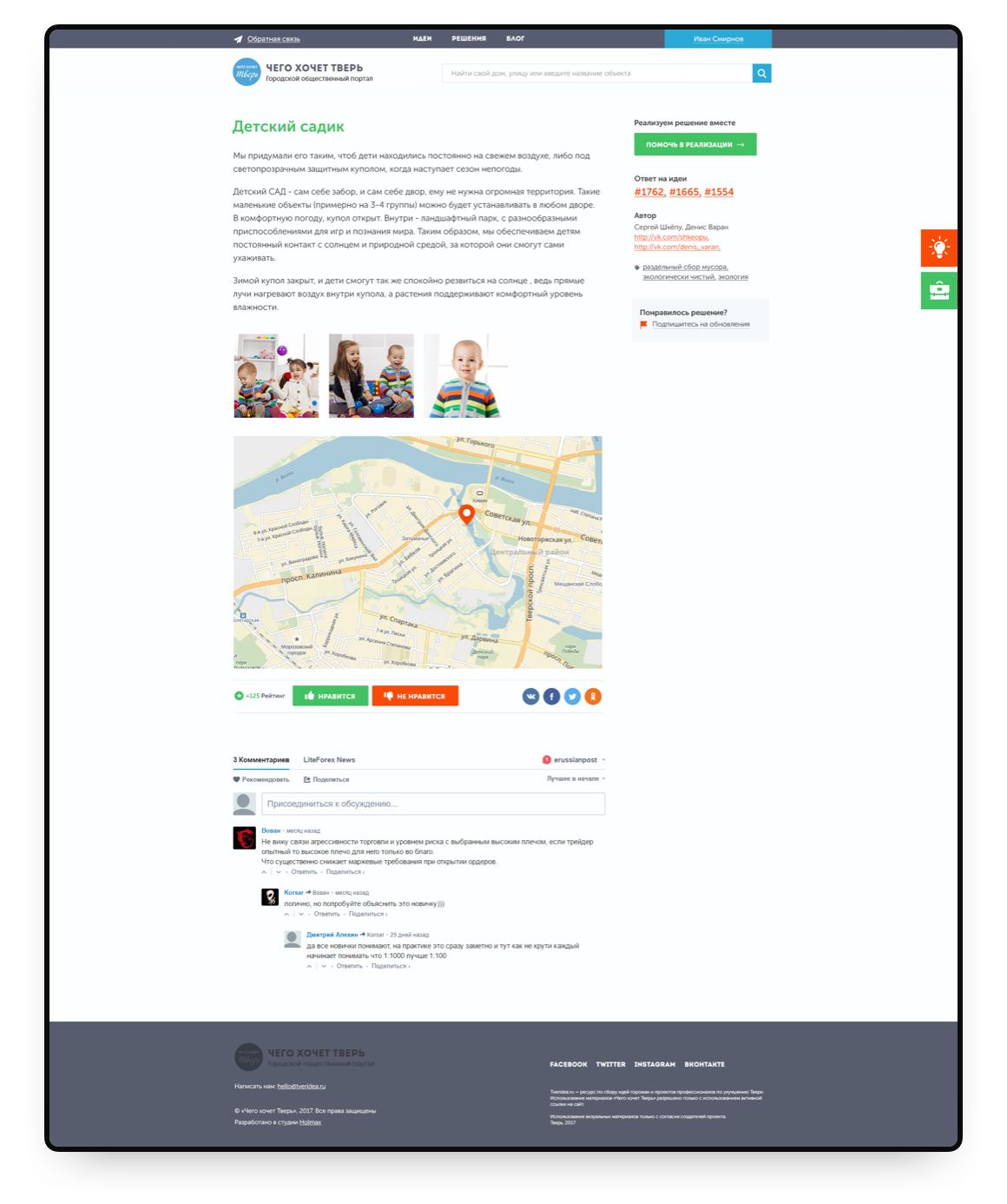 Чего хочет Тверь - это портал, на котором каждый житель Твери имеет возможность стать активным участником улучшения города. Предлагайте идеи и решения. Пора открыто сказать и вместе сделать то, чего хочет Тверь!